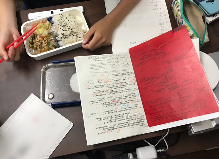 お弁当を食べながらも暗記をしています。