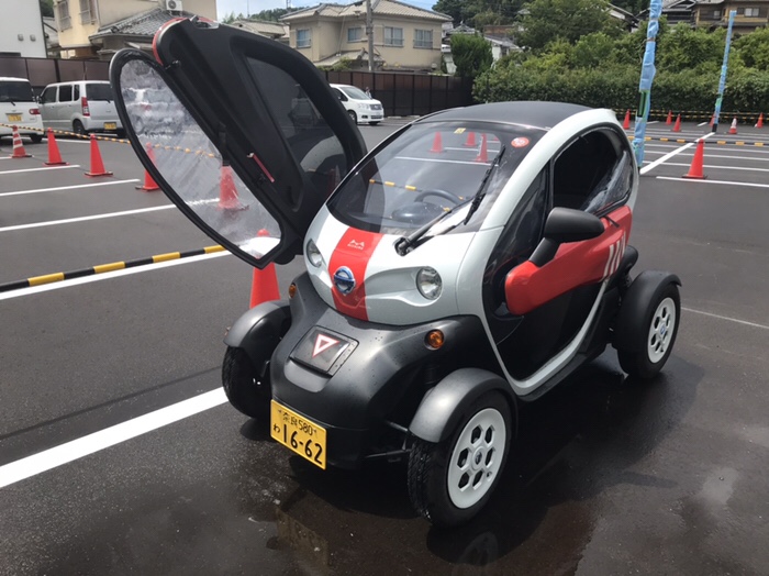 まずは車で奈良県高市郡明日香村の近鉄吉野線 飛鳥駅に行き、この可愛い電気自動車をレンタル!