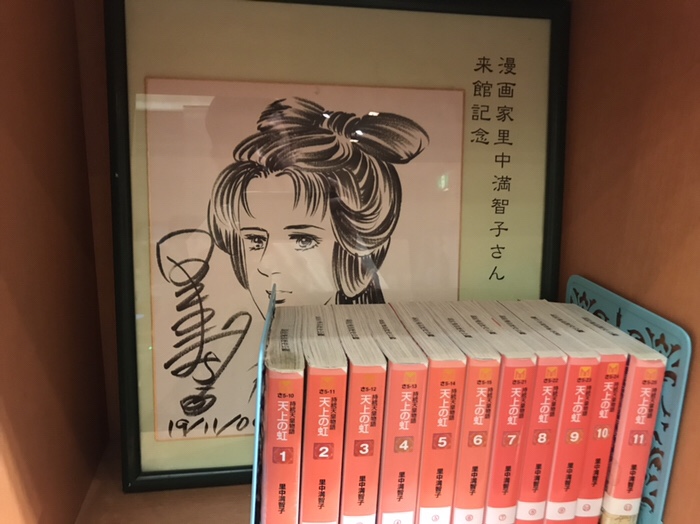館内には里中満智子さんの漫画「天上の虹」が。持統天皇の物語ですね。懐かしい!子供の頃、確か母が借りていたのを読んだことがあります。
