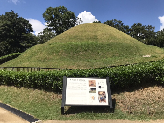撮影禁止でしたが、古墳内の石槨(棺を入れる石の箱)が原寸大で忠実に再現されており様子がよく分かりました。切手や教科書でしか見たことがなかった「女子群像」。再現とは言え、現地で見られて感動しました。
