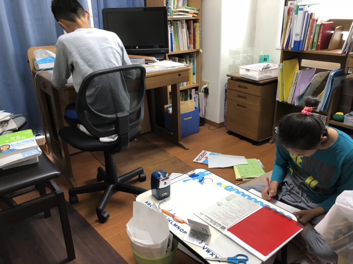 写真は日曜日の朝5時台から親を起こさないようにそっと二人で起きて頑張っていました。