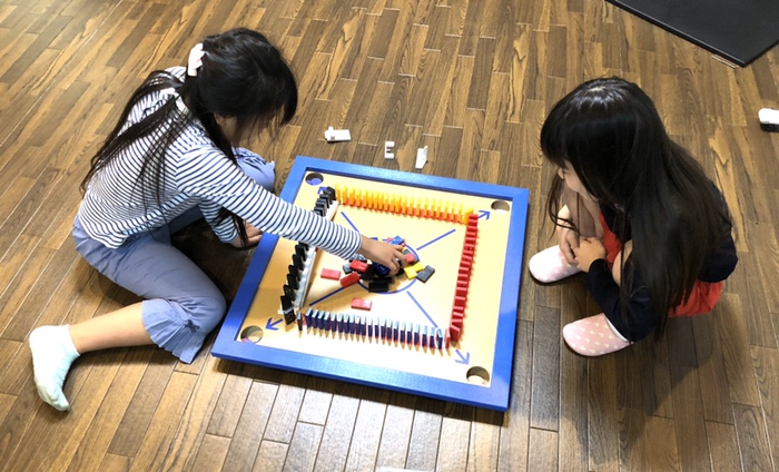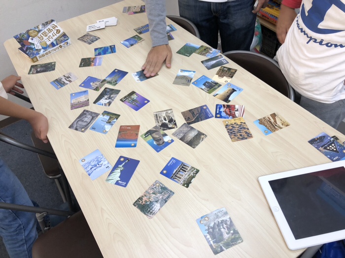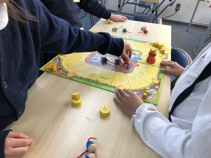 頭を使うゲームで休み時間も楽しく過ごします。すごい活気。