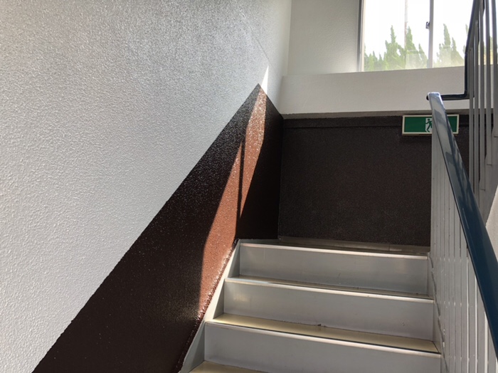 東香里校のビルオーナーが地震でひびが入った建物の修復とペンキの塗り直しをして下さいました。