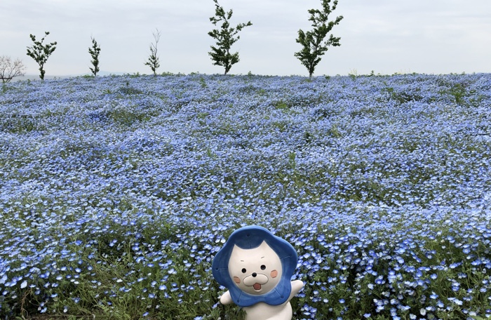 少し曇っていましたが、予想よりはるかに広大で、可憐なネモフィラの花畑に癒されました。