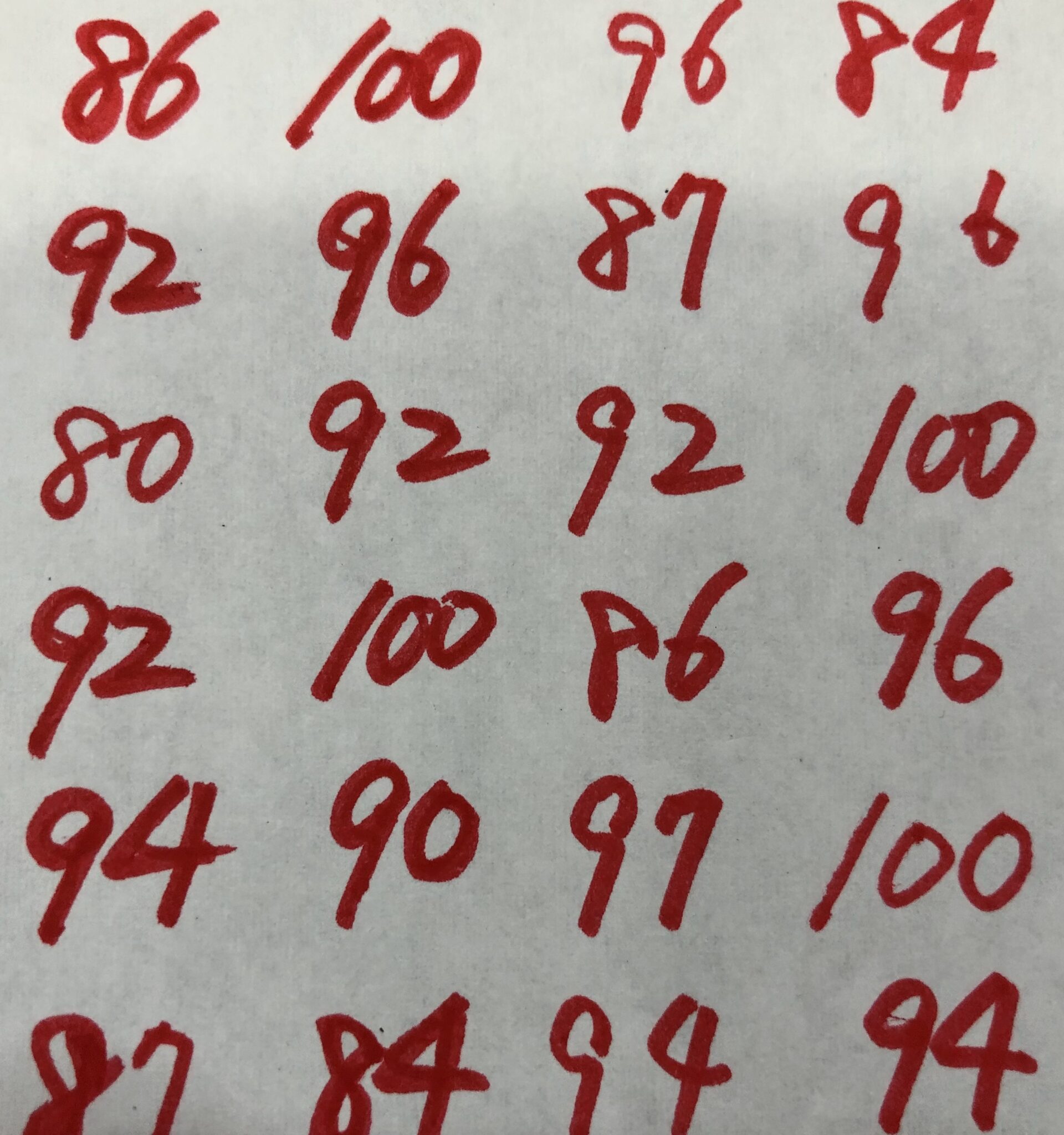 昨日、東香里校の中2さん7名が中間テスト結果(複数校・5教科・すべて100点満点換算)を見せてくれました。(※5/24のブログに書いたのは寝屋川校です。)結構よかったので80点以上のみを書き出してみました。嘘偽りない点数です。思わず、「すごいね・...