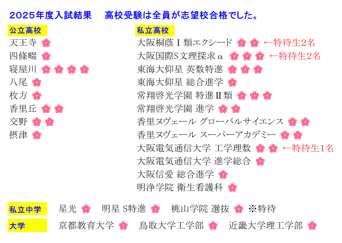 2025年度入試結果 2025 3/25 お知らせ ブログ 2025年3月25日2025年9月12日 お知らせ ブログ URLをコピーしました! 中間テスト対策お疲れ様でした 懇談のおすすめ この記事を書いた人 植田 剛仁 集団授業+個別演習 学習塾FRONT 塾長 「対話探求型集団授業」「講師が見守る長時間個別演習」「塾長オリジナル爆速暗記教材」「人気映像授業が全科目見放題」の強力で快適な仕組みに生徒さん自身が納得。大きく成果を出す学習塾です。 関連記事 3年ぶりの再会と甘いイチゴ 2026年1月20日 合格祈願に菅原天満宮へお参り 2026年1月10日 『フィンランドの幸せメソッド SISU』 2026年1月9日 深い落ち着きが心地よい 2026年1月7日 冬期講習終了! 2026年1月6日 「習慣化」の重要性 2026年1月5日 「質問の作法」と「解説の質」のジレンマ 2026年1月2日 合同教育イベントを開催しました! 2025年12月22日