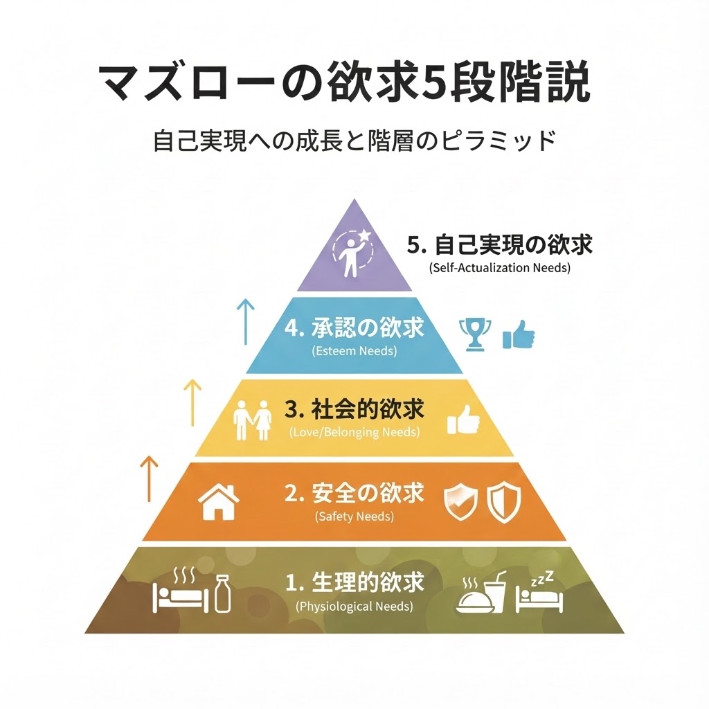 マズローは「人間の行動は段階的な欲求によって動機づけられている」と考えました。